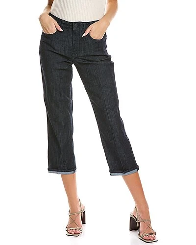 - Petite Relaxed Straight Ankle Cuff Jean in lightweight rinse with fading and whiskering wash, classic five-pocket style, and belt loops