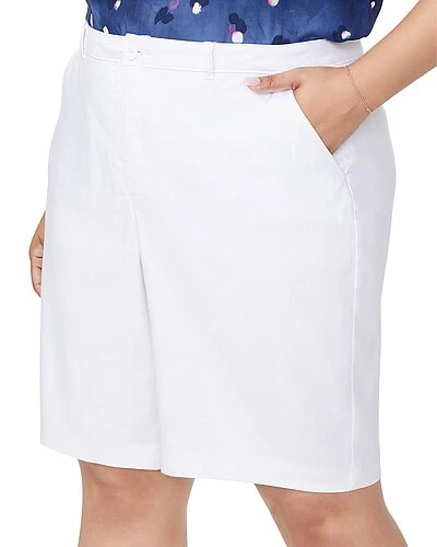 - Linen-Blend Bermuda Short in optic white with Lift Tuck technology, belt loops, and four-pocket styling