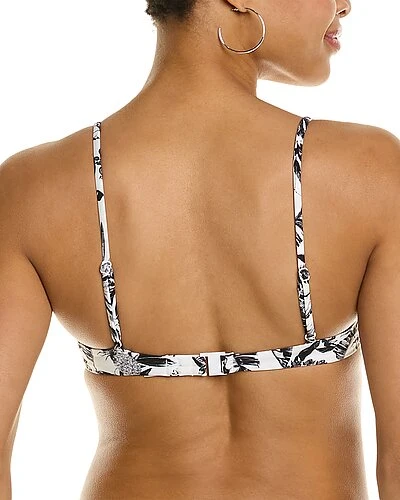 - Dalia Bikini Top in black multicolor with adjustable shoulder straps, white hardware, molded cups and underwire support