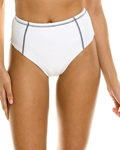 - Ella Bikini Bottom in white with contrast stitching and high-waist