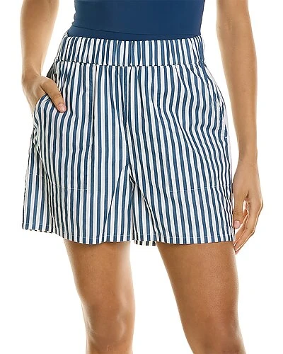 - Poplin Home Short in dark denim/white with elasticized waist and dual front pockets