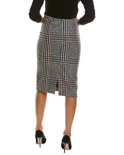 - Houndstooth Boucle Silk-Lined Wool & Alpaca-Blend Pencil Skirt in cumin multicolor with center vent at back hem