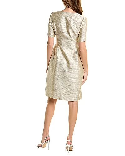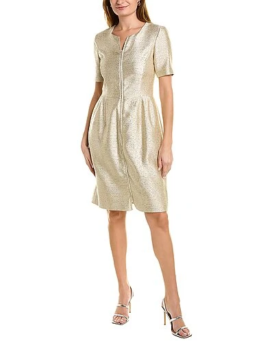 - Silk-Lined Sheath Dress in gold with sequin accents and side seam pockets