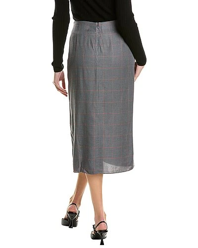 - Amber Plaid Silk Skirt in grey plaid with twist gathering at waist and slit at left leg