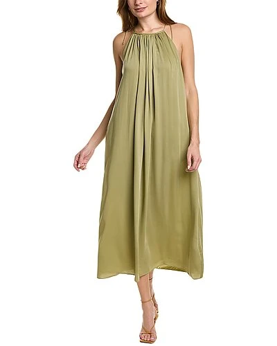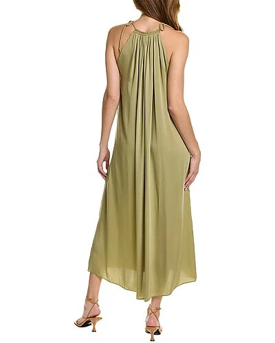 - Bailey Midi Dress in olive green with self-tie halter neck and dual side seam pockets