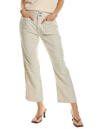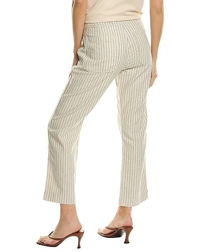 - Naval Linen-Blend Cropped in natural stripe with belt loops, and four-pocket styling