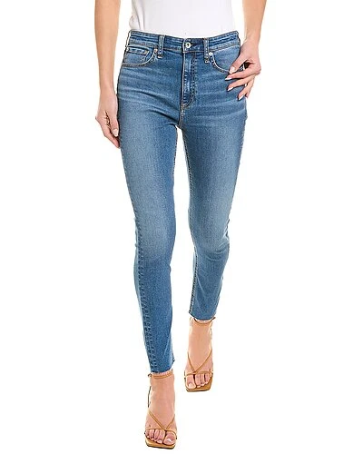 - Nina High-Rise Skinny in aviation with belt loops, whiskering and fading details, raw edge hem, and classic five-pocket styling