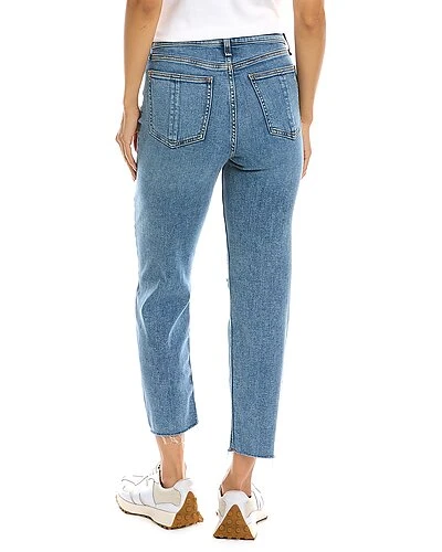 - Nina High-Rise Ankle Cigarette in Bloomfield with belt loops, whiskering and fading details, distressed detailing, raw edge hem, and classic five-pocket styling