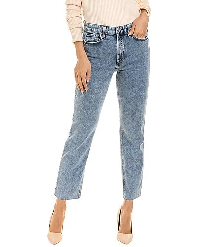 - Nina High-Rise Ankle Cigarette in calypso with belt loops, raw edge hem, and classic five-pocket styling