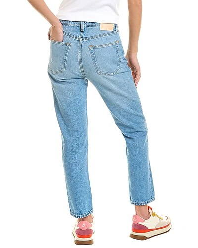 - Nina High-Rise Ankle Cigarette in tulip with fading and whiskering wash, belt loops, and classic five-pocket style
