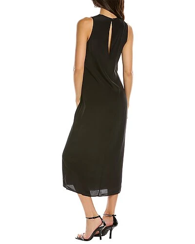 - Seon Dress in black with twisted shoulder strap, knotted waist detail and split front hem