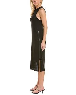- The Knit Rib Zip Midi Dress in black with zippered side seams