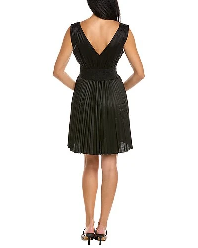 - Smocked Dress in onyx with poplin design, accordion pleated skirt, and side seam pockets