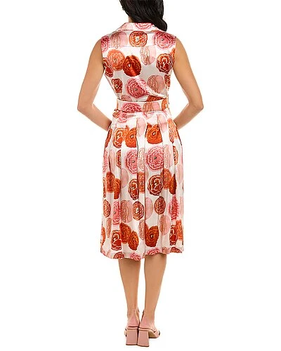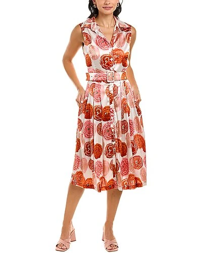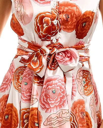 - Audrey 3 Silk Shirtdress in original flora with spread collar, pleated skirt, dual side on-seam pockets, and removable belt