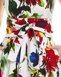 - Claire Shirtdress in white watercolor multicolor with pleated skirt, side seam pockets, matching belt, and tie sash at waist