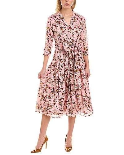 - Patricia Shirtdress in Cardiff magnolia soft rose with spread collar, button cuffs, belted waist, pleated skirt and dual side seam pockets
