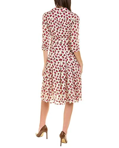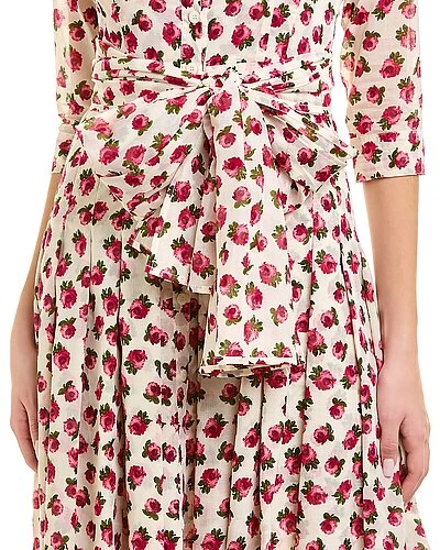 - Patricia Shirtdress in ivory rose sweet rose with 3/4-length sleeves, pleated skirt, side seam pockets, removable belt, and tie sash