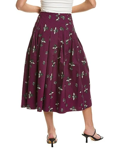 - Zelda Midi Skirt in bee & crown plum with pleated design and two front pockets