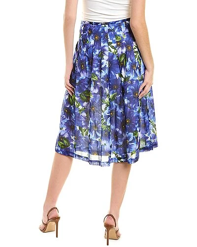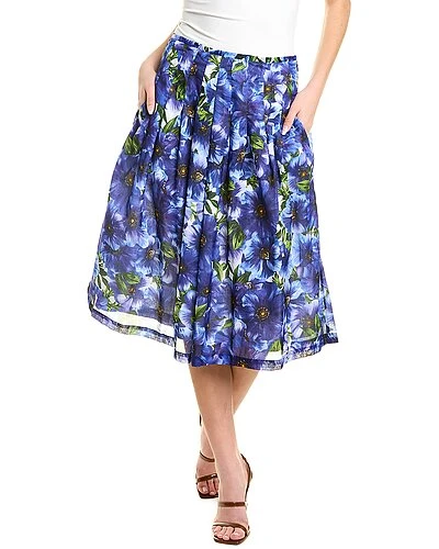 - Zelda Midi Skirt in anemone violet cobalt blue with pleated design and two front pockets