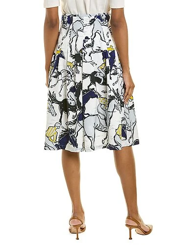 - Zelda Midi Skirt in horse racing white blue with pleated design and two front pockets