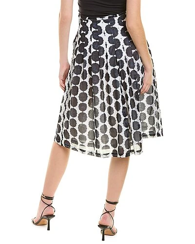 - Zelda Midi Skirt in medallion ikat white indigo with pleated design and two front pockets