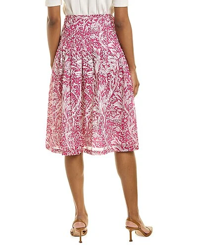 - Zelda Midi Skirt in acardia wallpaper white pink with pleated design and two front pockets