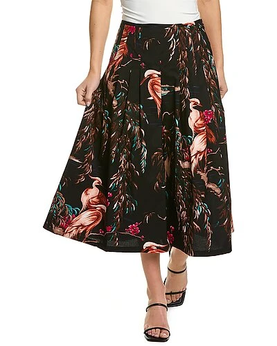 - Zelda Midi Skirt in hackney wallpaper black with pleated design and two front pockets