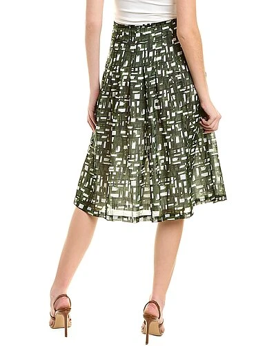 - Zelda Midi Skirt in abstract basquiat white green with pleated design and two front pockets