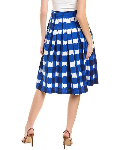 - Zelda Midi Skirt in ghana check white blue with pleated design and two front pockets