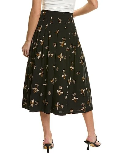 - Zelda Midi Skirt in bee & crown black with pleated design and two front pockets