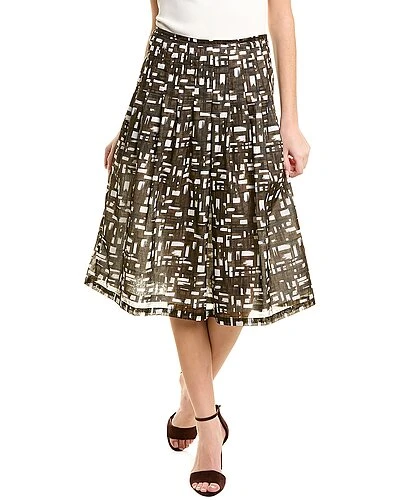 - Zelda Midi Skirt in abstract basquiat white sepia with pleated design and two front pockets
