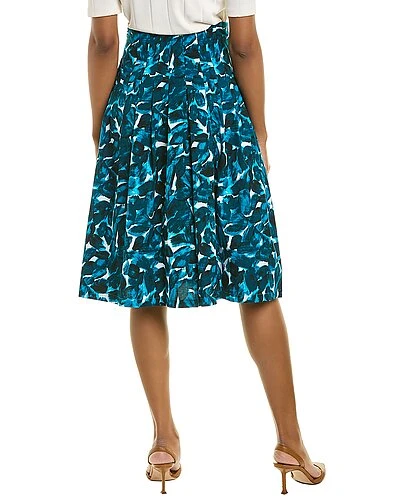 - Zelda Midi Skirt in delft touch white aqua with pleated design and two front pockets