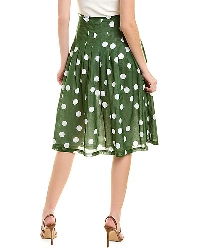 - Zelda Midi Skirt in fellini dots olive green with pleated design and two front pockets