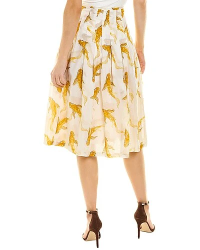 - Zelda Skirt in white and yellow trout Shubert with pleated design and side seam pockets