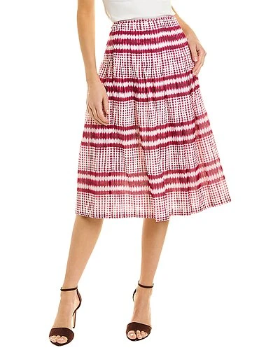 - Zelda Skirt in white and pink shibori motohiko with pleated design and side seam pockets