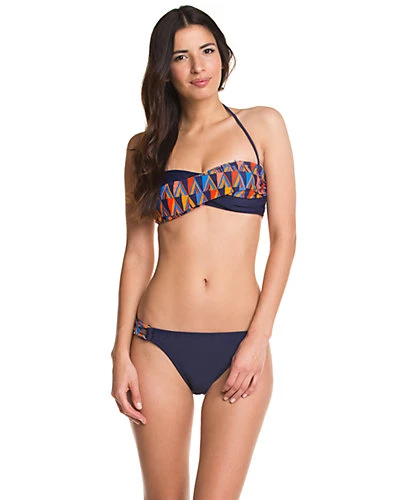 - Navy and orange, red, and blue Casco Bay print brief bottom with twist detail at sides