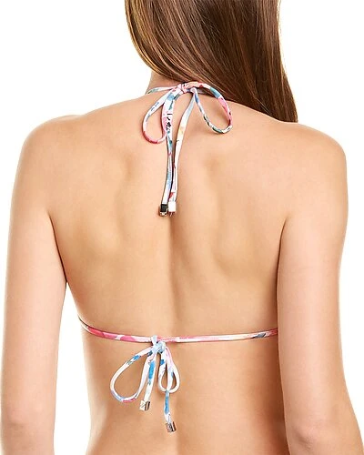 - Design details: printed design, triangle cups, and lettuce ruffle trim
