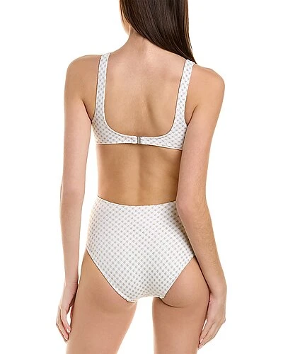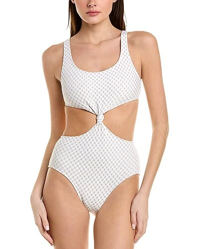 - The Bailey One-Piece in lurex gingham with cutout design and knot accent