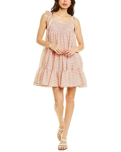 - The Parker Mini Dress in chili/brule with self-tie shoulder straps, smocked bodice and tiered design