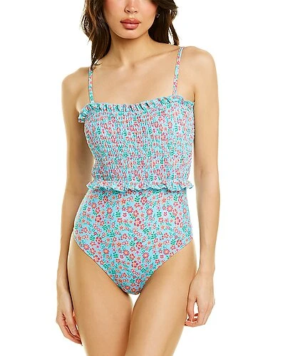- Vera One-Piece in blue with smocked bodice and removable shoulder straps