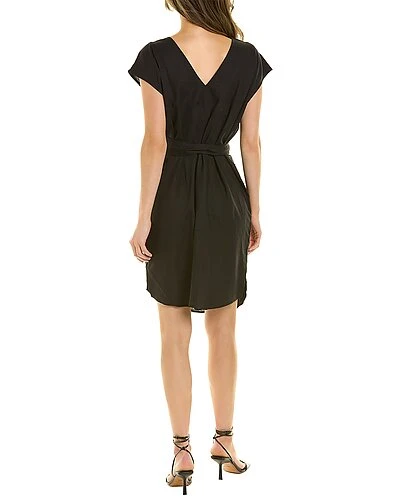 - Savannah Linen-Blend Dress in black with tie sash at waist, side seam pockets, and shirttail hem