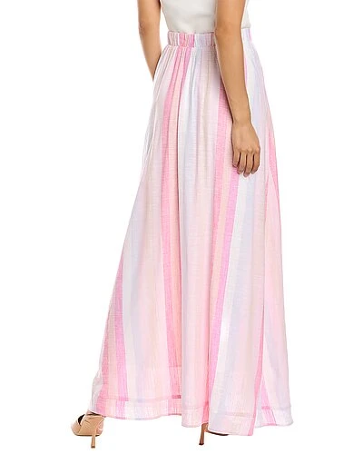 - Sunset Linen-Blend Maxi Skirt in hibiscus stripe with elasticized back waist