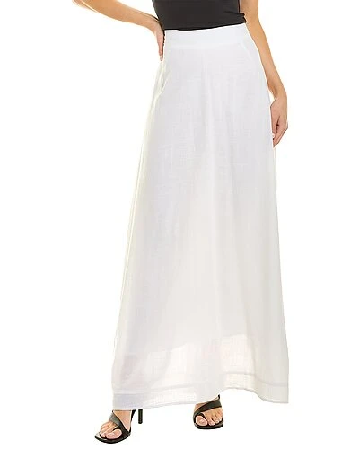 - Sunset Linen-Blend Maxi Skirt in white with elasticized back waist