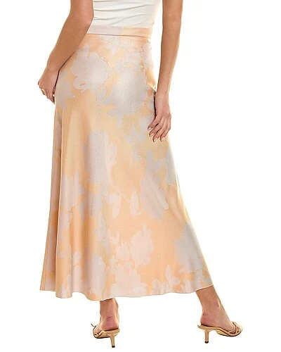 - Jacquard A-Line Skirt in peach multicolor with floral intarsia