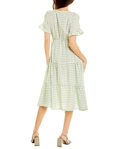 - Design details: V-neck, ruffle cuffs and tiered skirt