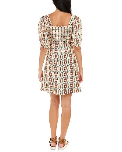 - Design details: square neckline, smocked bodice and pleated puff sleeves