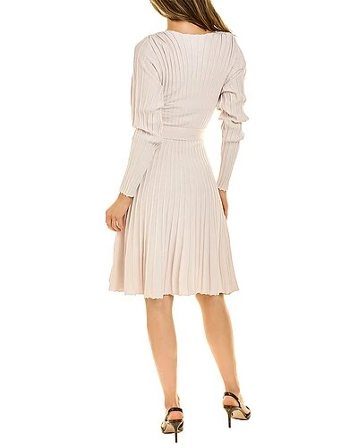 - Ava Sweaterdress in sancerre with accordion pleated knit, boat neck and self-tie waist sash