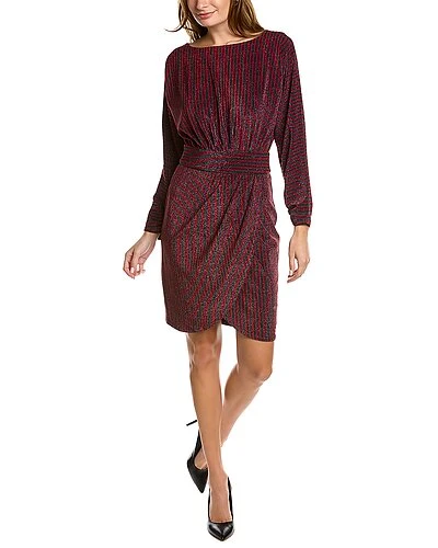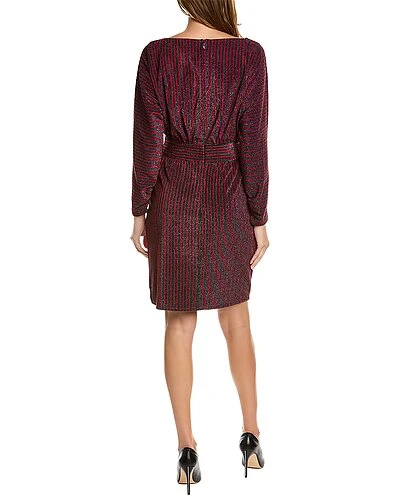 - Concoction Blouson Dress in multicolor with boatneck, dolman sleeves, blouson waist, and tulip skirt