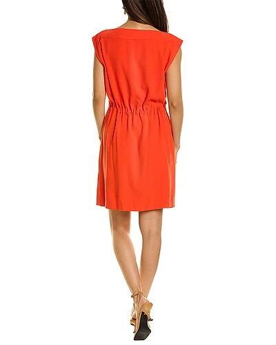 - Desert Willow Shift Dress in torch with boat neck, extended shoulder and drawstring waist