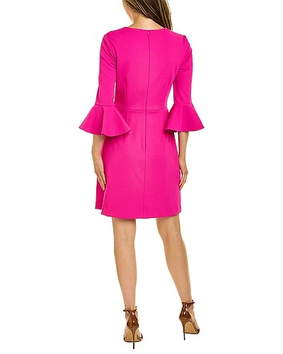 - Mirana Mini Dress in brilliant fuchsia with faux button front and bell-sleeves